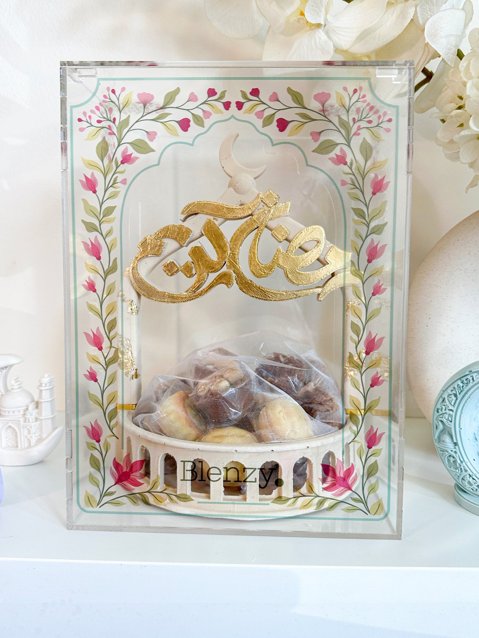 and finished with gold leaf. Packed in beautiful acrylic box with floral sticker.